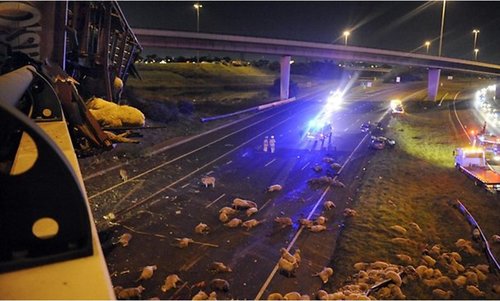事故发生后,王子高速公路朝墨尔本方向被关闭,韦斯特盖特高速路上一条出市行车道也被关闭。警方称,事故发生时,现场遍地都是羊的尸体。