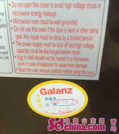 中国山东网青岛频道11月27日讯 青岛尚先生双十一在天猫]上购买了一台格兰仕微波炉,原价1699元的微波炉尚先生当天仅花了599元,自然满心欢喜。19日,微波炉终于送到了尚先生手里,可拆开包装一看,尚先生傻了眼,“怎么合格证上的检验日期是11月25呢?”