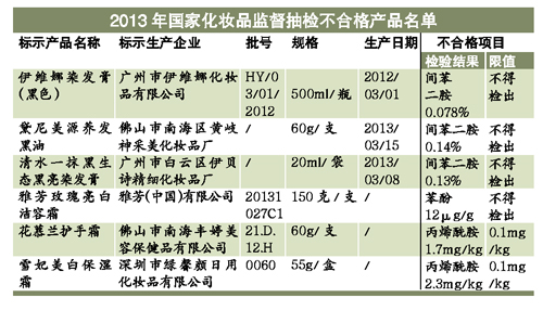 记者了解发现,除了雅芳外,其他企业基本都是广东化妆品公司,染发膏成为不合格产品重灾区。