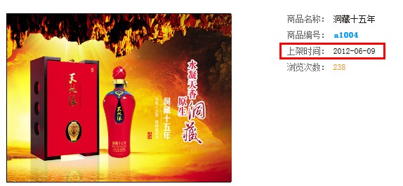 天地缘酒业官网上标明的“15年洞藏酒”上架时间为2012年