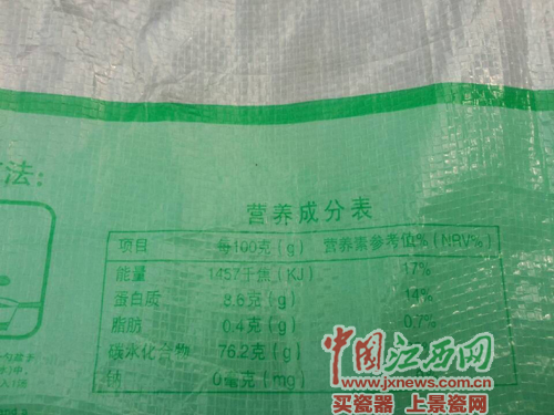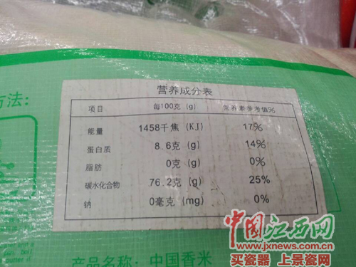 中国江西网讯 记者孙娟报道:大米中营养素参考值的百分数必须是整数,不能带有小数点,你知道吗?4月15日,杨先生向中国江西网反映,他于12日在南昌红谷滩新区华润万家第一街区店购买的大米不符合相关法律规定,大米包装袋上脂肪的营养素参考值为0.7%,吃多了可能对身体不好。