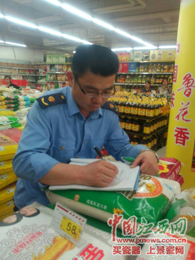 随后,记者联系上南昌市红谷滩新区工商行政管理局沙井分局,工作人员立即进驻商场进行调查。“我们会对这些大米进行下架处理,并对此事进行进一步调查。”沙井分局局长张菁称,调查清楚前,这些大米都不能上架销售。