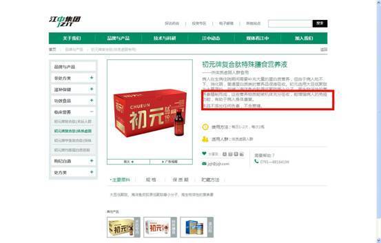 无独有偶,连日以来,新华食品调查发现,江中药业旗下初元营养液涉嫌违法宣传,部分产品没有保健品批号,却宣传保健功能,涉嫌欺骗、误导消费者。记者在江中集团官网看到,江中集团“初元”系列产品主要有:针对术后型、体虚型的“初元复合肽特殊膳食营养液”,针对放化疗型的“初元甲鱼复合肽特殊膳食营养液”,以及针对住院病人及病后人群、体质虚弱人群、老年人和儿童的“初元均衡蛋白营养粉”等。