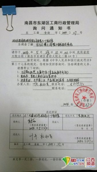 5月28日,南昌市工商局东湖工商局大院工商所的执法人员到南昌市沃尔玛超市八一店进行检查,执法人员看到“滕王阁”牌粽子包装盒上印制了“中国食品工业协会全国粽子专业委员会副会长单位”宣传标语后,请江西乔家栅食品有限公司的销售人员提供“中国食品工业协会全国粽子专业委员会副会长单位”资质的相关材料,该公司销售人员无法提供,随后向江西乔家栅食品有限公司派驻在超市的人员下发了《询问通知书》和《强制措施决定书》,责令江西乔家栅食品有限公司将“滕王阁”牌粽子礼盒全部下架,等待处理。