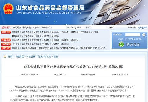 据统计,2014年3-4月份,山东省各级食品药品监管部门移送同级工商行政管理部门查处的违法药品广告4417条次,保健食品广告1573条次,医疗器械广告583条次。