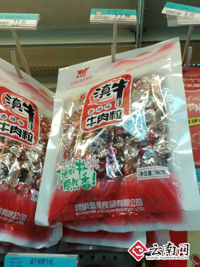 此次被国家食药总局通报的云南4家企业的不合格产品分别是2款牛肉产品和2款调料产品。