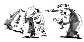 消费者喝汇源橙汁后感觉异样,发现橙汁是复原橙汁但包装盒没有如实标明,认为超市存在误导,便一纸诉状将超市告上法庭。重庆市第五中级人民法院近日审理后,认定厂家应在其包装盒醒目位置标示反映其真实属性的专用名称“复原橙汁”,判决超市退还购货款7.8元,并5倍赔偿39元。