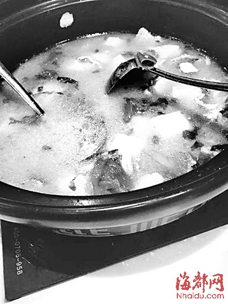 潘先生在锅里捞出的创可贴(画圈处)