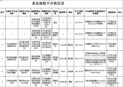 辽宁省食药监局2017年第15期食品抽检 6批次食品不合格