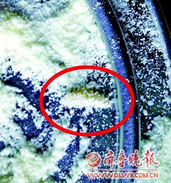 图中红圈处为奶粉中的虫子。(资料片)