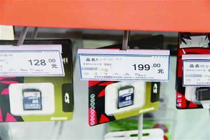 丛先生告诉记者,8月中旬,他来到华润万家大众广场人防店的超市,想为自己的单反相机选购一款存储卡。在电子配件区,他看中了一款金士顿16GB的存储卡,蓝色价签显示售价为199元。销售人员表示,真想买的话可以便宜点,最低169元。