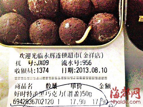 市民超市购买巧克力 拆开发现2条活虫蠕动