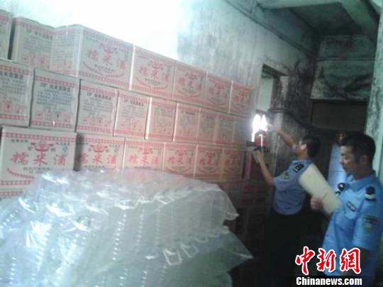 在该制售假酒窝点内,几个房间里堆满了包装好准备销售的金锅米酒、糯米酒、红葡萄酒等9种共计800多件假酒,涉案金额4万多元。