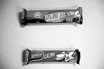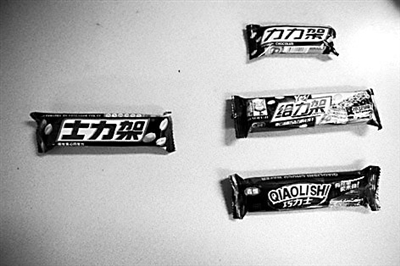 “买后才发现是山寨的。”张小姐是顺义人,近日,她在北京站附近想买点零食火车上吃,出了小卖部才发现,自己买的“恰恰”香瓜子成了“恰好”香瓜子,而“士力架”巧克力棒的真面目有个好笑的名字——“给力架”。