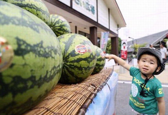 报道称,富山县入善町的居民们23日在町政府办公楼附近的广场上一饱口福。一个直径约30厘米、长约40厘米的大西瓜被切开后,孩子们便大口大口地吃了起来,边吃边称赞“甜甜的,很好吃”。