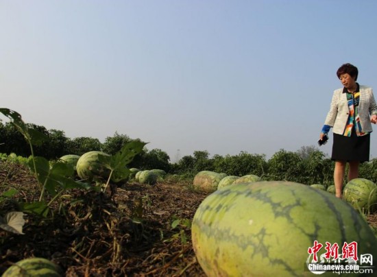 由于受到近日连绵秋雨的影响,原本长势茂盛的瓜秧,如今已经枯萎,只剩下52个绿油油的西瓜了。