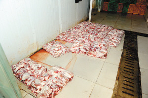 加工窝点内气味刺鼻,有随行的媒体记者因为无法忍受这种气味儿而跑到门口呕吐。窝点内有一个10余平方米的冷库,运来的整批精冻猪肉都存放在这里,里面的成品和半成品都被警方封存。