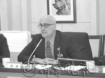 沃尔玛中国公司事务高级副总裁博睿在约谈现场回应假“五香驴肉”事件。(图片来源:齐鲁晚报)