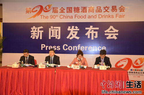中新网3月26日电 26日,第90届全国糖酒商品交易会新闻发布会在成都举行。中国糖业酒类集团公司副总经理杨成刚、成都市人民政府副秘书长曾敏、成都市贸促会会长母涛、全国糖酒会办公室副主任赵伟等出席发布会。第90届全国糖酒商品交易会将于3月28日—31日在四川成都世纪城新国际会展中心举办。届时,来自海内外三十余个国家和地区的近三千家参展商和十余万专业观众将共聚蓉城。