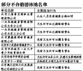 新京报讯 (记者温薷)今后,全市游泳场馆将每日自检水温、余氯、酸碱度等数值,并实时在北京市卫生监督所网站公示。目前北京对游泳池的专项整治中,已发现19家游泳场馆不合格。此外,市卫监部门正在调研,有望出台针对温泉水质的管理规范。
