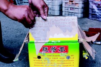 “你看,光这个箱子就3斤多,前几天冬枣28元一斤,一个纸箱就上百元。”24日上午,在观音阁水果批发市场,商贩李女士指着冬枣的外箱说,销售时只能把纸箱的价格加出来,每斤至少得多加2块钱。另一位商贩张大哥将冬枣的外包装箱撕开,一层一层都涂满了灰色的泥浆,放在秤上一看,3斤7两。“这些都是山西的冬枣,批发价15元一斤,我们卖20元一斤都不赚钱,光箱子就得搭进去60多元。”