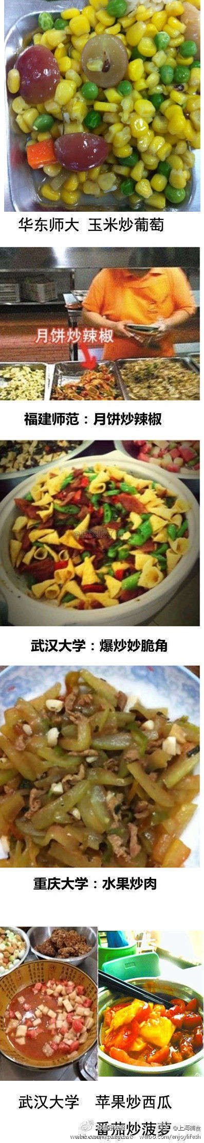 【华师大食堂惊现新菜:玉米炒葡萄】开学了,华师大闵行食堂迎来一道新菜——玉米炒葡萄。色泽清爽,食堂饭菜中的小清新有木有。这道菜也是继月饼炒辣椒、西瓜炒苹果、番茄炒菠萝等等奇葩菜之后大学食堂的又一神作。话说大厨们这是要创立中国第九大菜系的节奏么?
