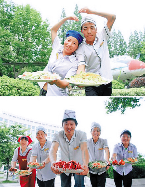 近日,微博上数名身着白色大褂、头顶厨师帽的大叔、大妈手捧各种食物在南航的特色建筑前摆起造型的海报特别“惹火”,火辣辣的小龙虾、香喷喷的土豆牛腩、鲜美的青椒虾仁……让观者垂涎欲滴。据介绍,这些都是南航食堂的特色菜。不少网友盛赞该校的招生广告贴近民生,有人情味儿,网上已达1300万次点击阅读和10000多条评论。