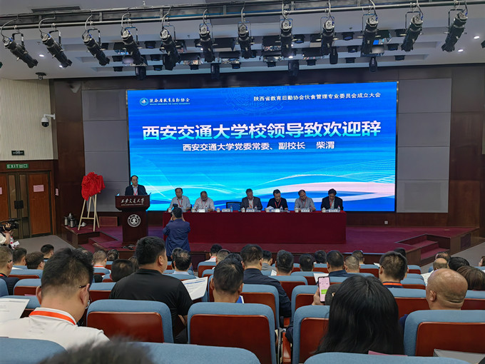 会上,陕西省教育后勤协会会长张玉明、省教育后勤协会副会长、伙专会主任、西安交通大学副校长柴渭共同上台为“陕西省教育后勤协会伙食管理专业委员会” 揭牌。