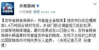 吉林多地粮库“以陈顶新”调查21日前或公布结果